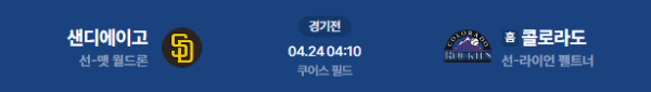2026년 4월 24일(금) 오전 04:10 (KST) 메이저리그(MLB): 샌디에이고 파드리스 vs 콜로라도 로키스