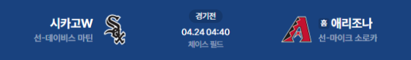2026년 4월 24일(금) 오전 04:40 (KST) 메이저리그(MLB): 시카고 화이트삭스 vs 애리조나 다이아몬드백스