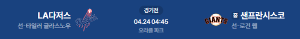 2026년 4월 24일(금) 오전 04:45 (KST) 메이저리그(MLB): LA 다저스 vs 샌프란시스코 자이언츠