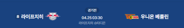 2026년 4월 25일(토) 오전 03:30 (KST) 독일 분데스리가 31라운드: RB 라이프치히 vs 우니온 베를린