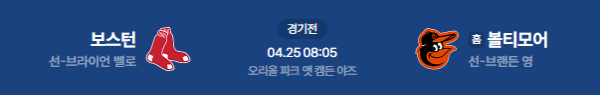 2026년 4월 25일(토) 오전 08:05 (KST) 메이저리그(MLB): 보스턴 레드삭스 vs 볼티모어 오리올스