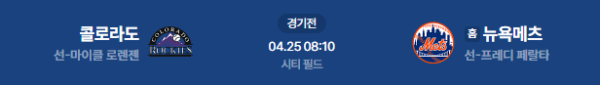 2026년 4월 25일(토) 오전 08:10 (KST) 메이저리그(MLB): 콜로라도 로키스 vs 뉴욕 메츠