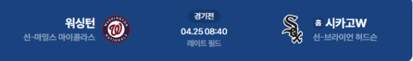 2026년 4월 25일(토) 오전 08:40 (KST) 메이저리그(MLB): 워싱턴 내셔널스 vs 시카고 화이트삭스