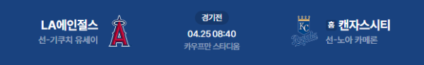 2026년 4월 25일(토) 오전 08:40 (KST) 메이저리그(MLB): LA 에인절스 vs 캔자스시티 로열스