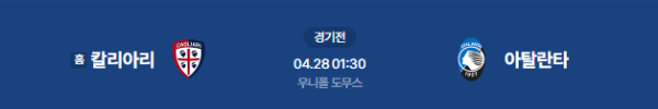 2026년 4월 26일(일) 오후 10:00 (KST) 이탈리아 세리에 A 33라운드: 칼리아리 칼초 vs 아탈란타 BC