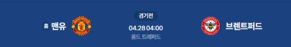 2026년 4월 28일(화) 오전 04:00 (KST) 잉글랜드 프리미어리그(EPL) 34라운드: 맨체스터 유나이티드 vs 브렌트퍼드