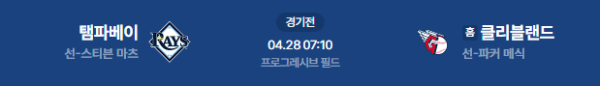 2026년 4월 28일(화) 오전 07:10 (KST) 메이저리그(MLB): 탬파베이 레이스 vs 클리블랜드 가디언스