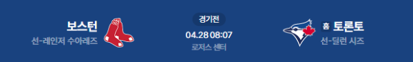 2026년 4월 28일(화) 오전 08:07 (KST) 메이저리그(MLB): 보스턴 레드삭스 vs 토론토 블루제이스