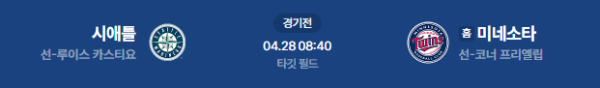 2026년 4월 28일(화) 오전 08:40 (KST) 메이저리그(MLB): 시애틀 매리너스 vs 미네소타 트윈스