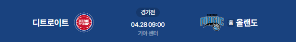 2026년 4월 28일(화) 오전 09:00 (KST) NBA 동부 컨퍼런스 플레이오프 1라운드 4차전: 디트로이트 피스톤즈 vs 올랜도 매직