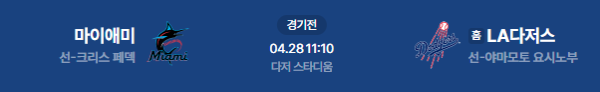 2026년 4월 28일(화) 오전 11:10 (KST) 메이저리그(MLB): 마이애미 말린스 vs LA 다저스