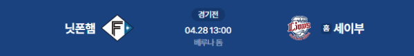 2026년 4월 28일(화) 오후 1:00 (KST) 일본프로야구(NPB): 사이타마 세이부 라이온즈 vs 홋카이도 닛폰햄 파이터즈