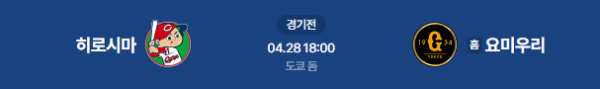 2026년 4월 28일(화) 오후 6:00 (KST) 일본프로야구(NPB): 요미우리 자이언츠 vs 히로시마 도요 카프