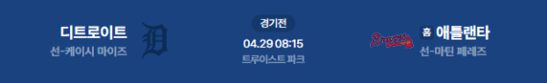 2026년 4월 29일(수) 오전 08:15 (KST) 메이저리그(MLB): 애틀랜타 브레이브스 vs 디트로이트 타이거스