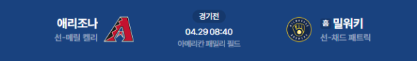2026년 4월 29일(수) 오전 08:40 (KST) 메이저리그(MLB): 밀워키 브루어스 vs 애리조나 다이아몬드백스