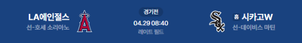 2026년 4월 29일(수) 오전 08:40 (KST) 메이저리그(MLB): 시카고 화이트삭스 vs LA 에인절스