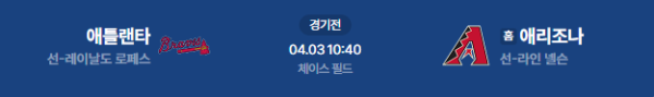 MLB 예정 경기: 애틀랜타 브레이브스 vs 애리조나 다이아몬드백스