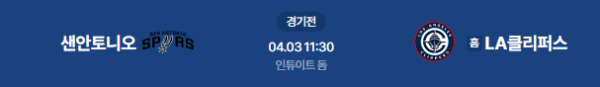 2026년 4월 3일(금) 11:30(KST) 미국 캘리포니아주 잉글우드의 인튜이트 돔에서 열리는 샌안토니오 스퍼스 vs LA 클리퍼스의 NBA 정규 시즌 경기 분석 리포트입니다.