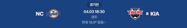 경기 시간: 2026년 4월 3일 18:30 (KST) / 장소: 광주 기아챔피언스필드 (날씨: 18.9° 맑음)