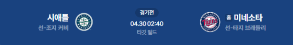 2026년 4월 30일(목) 오전 02:40 (KST) 메이저리그(MLB): 미네소타 트윈스 vs 시애틀 매리너스