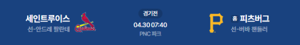 2026년 4월 30일(목) 오전 07:40 (KST) 메이저리그(MLB): 피츠버그 파이리츠 vs 세인트루이스 카디널스