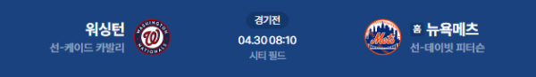 2026년 4월 30일(목) 오전 08:10 (KST) 메이저리그(MLB): 뉴욕 메츠 vs 워싱턴 내셔널스