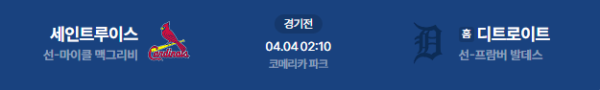 2026년 4월 4일(토) 02:10(KST) 메이저리그(MLB) 세인트루이스 카디널스 vs 디트로이트 타이거즈