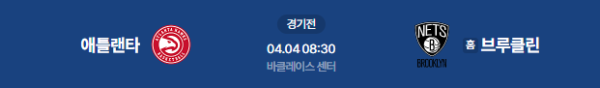 2026년 4월 4일(토) 08:30(KST) NBA 정규 시즌: 애틀랜타 호크스 vs 브루클린 네츠