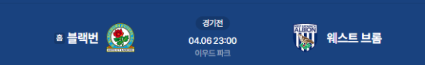 2026년 4월 6일(월) 23:00(KST) 잉글랜드 챔피언십: 블랙번 로버스 vs 웨스트 브롬