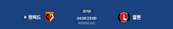 왓퍼드는 홈에서 승리할 경우 플레이오프 진출권(6위권) 추격의 불씨를 살릴 수 있으며, 찰턴은 원정에서 승점을 확보하여 안정적인 중하위권 안착을 노려야 하는 상황입니다.