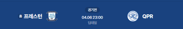2026년 4월 6일(월) 23:00(KST) 잉글랜드 챔피언십: 프레스턴 노스 엔드 vs QPR