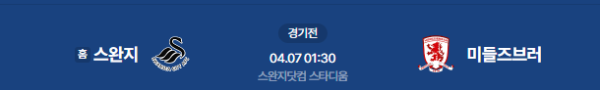 2026년 4월 7일(화) 01:30(KST) 잉글랜드 챔피언십: 스완지 시티 vs 미들즈브러