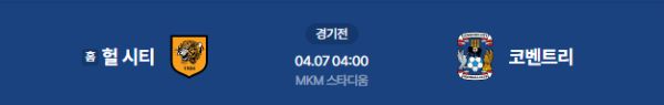 2026년 4월 7일(화) 04:00(KST) 잉글랜드 챔피언십: 헐 시티 vs 코벤트리 시티