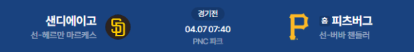 2026년 4월 7일(화) 07:40 (KST) MLB: 샌디에이고 파드리스 vs 피츠버그 파이어리츠