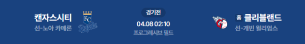 2026년 4월 8일(수) 02:10 (KST) MLB: 캔자스시티 로열스 vs 클리블랜드 가디언스