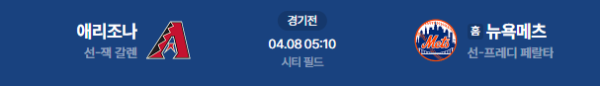 2026년 4월 8일(수) 05:10 (KST) MLB: 애리조나 다이아몬드백스 vs 뉴욕 메츠