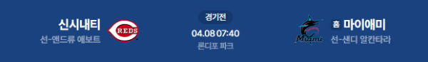2026년 4월 8일(수) 07:40 (KST) MLB: 신시내티 레즈 vs 마이애미 말린스