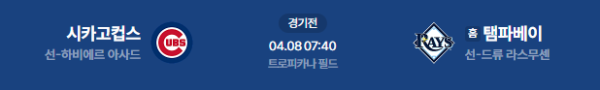 2026년 4월 8일(수) 07:50 (KST) MLB: 시카고 컵스 vs 탬파베이 레이스