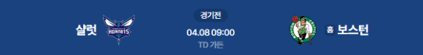 2026년 4월 8일(수) 09:00 (KST) NBA: 샬럿 호네츠 vs 보스턴 셀틱스