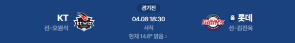 2026년 4월 8일(수) 18:30 (KST) KBO 리그: KT 위즈 vs 롯데 자이언츠