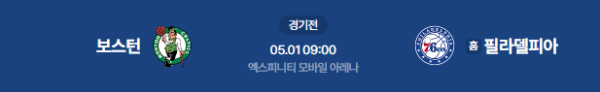 2026년 5월 1일(금) 오전 09:00 (KST) NBA 동부 컨퍼런스 플레이오프 1라운드 6차전: 보스턴 셀틱스 vs 필라델피아 76ers