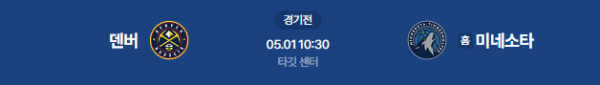 2026년 5월 1일(금) 오전 10:30 (KST) NBA 서부 컨퍼런스 플레이오프 1라운드 6차전: 미네소타 팀버울브스 vs 덴버 너기츠