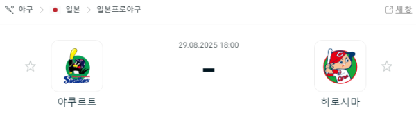 예상 스코어: 야쿠르트 3-2 히로시마 (야쿠르트 신승 가능성)