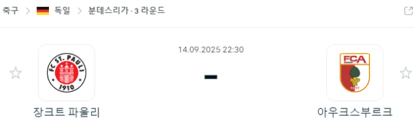 9월 14일 분데스리가 장크트파울리 아우크스부르크