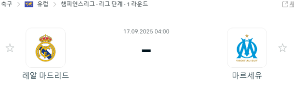 9월 17일 유럽챔피언스리그 레알마드리드 마르세유