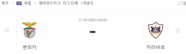 9월 17일 유럽챔피언스리그 벤피카 카라바흐
