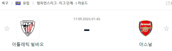 9월 17일 유럽챔피언스리그 아틀레틱빌바오 아스날