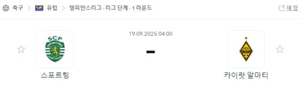 9월 19일 챔피언스리그 스포르팅 카이랏알마타