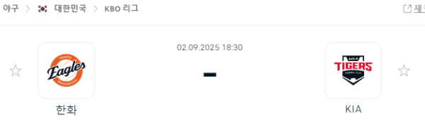 9월 2일 KBO 한화이글스 기아타이거즈