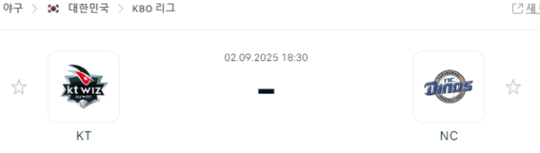 9월 2일 KBO KT위즈 NC다이노스
